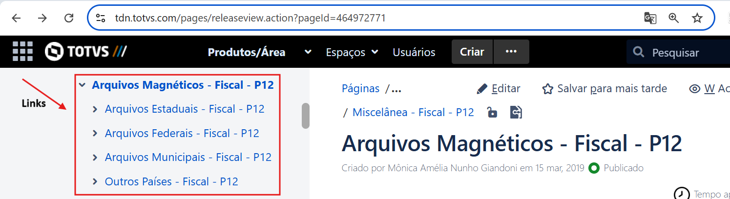 | Documentações arquivos magnéticos Você já conhece as documentações sobre as obrigações fiscais? Nelas, você encontrará detalhes importantes e configurações essenciais para o Protheus, além de dicas práticas que podem tornar o seu dia a dia mais eficiente. Confira também através do TDN conforme a imagem abaixo. Não deixe de acessar e aproveitar todo o conteúdo disponível para otimizar o seu trabalho! ![]() |