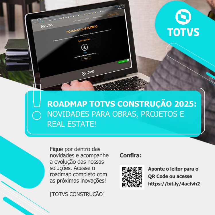 O primeiro roadmap TOTVS Construção de 2025 está no ar, destacando as entregas previstas para o segmento. O documento apresenta novas funcionalidades desenvolvidas para oferecer soluções mais eficientes e produtivas para seus negócios. O material completo está disponível no portal de produtos.