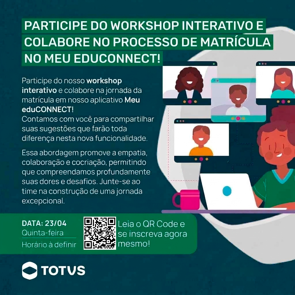 Convidamos você para participar do Workshop para evolução da matrícula no aplicativo Meu eduCONNECT.