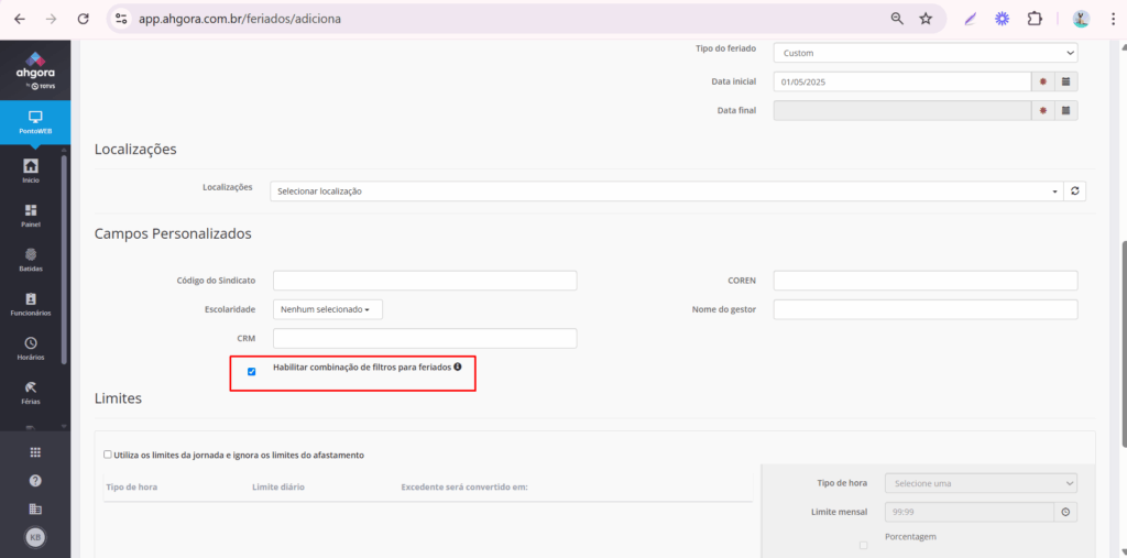 Liberamos a possibilidade de combinação de campos personalizados para filtrar a aplicação dos feriados no Pontoweb, garantindo uma seleção mais precisa dos colaboradores que serão vinculados ao mesmo! O artigo da nossa base de conhecimentos que ensina a lançar o feriado com essa novidade!